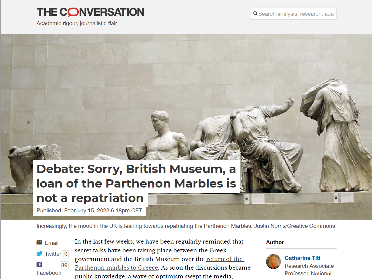 Kathimerini, mention of The Parthenon Marbles and International Law, 16 February 2023