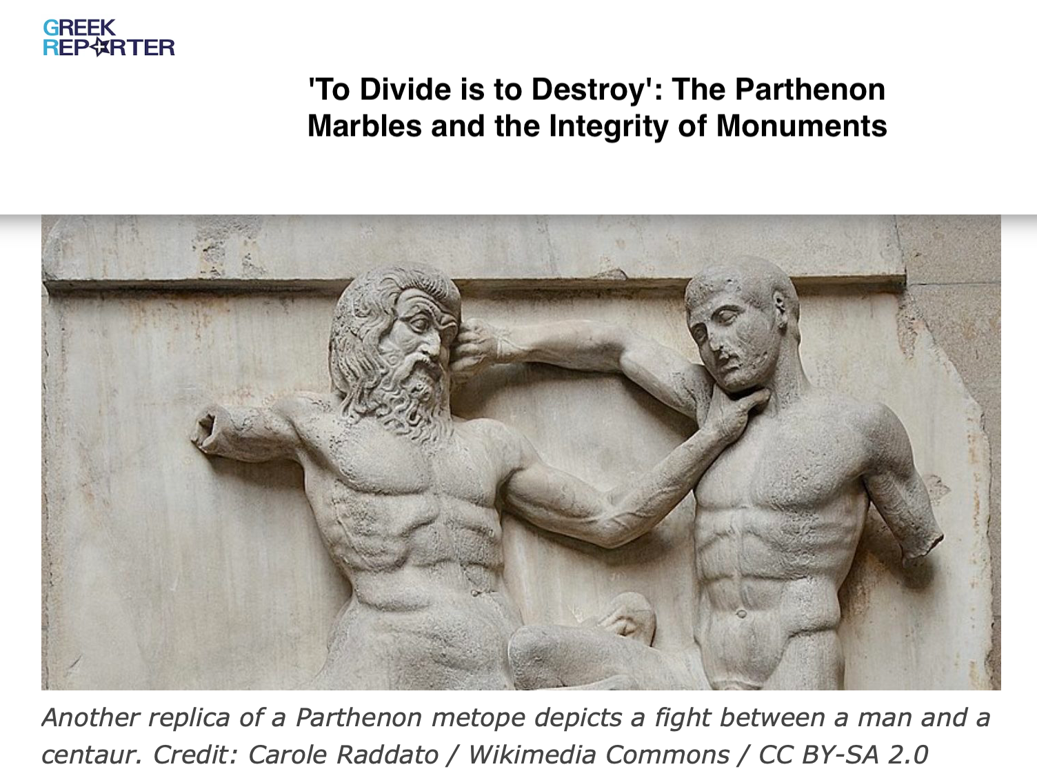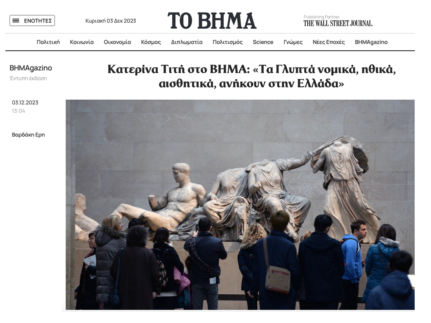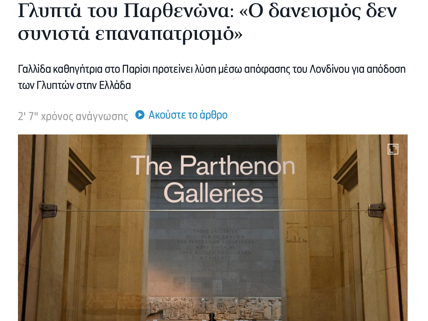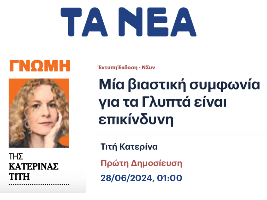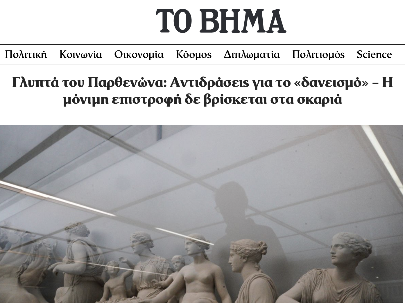 Mία βιαστική συμφωνία για τα Γλυπτά είναι επικίνδυνη (in Greek). On the website of TA NEA, here.