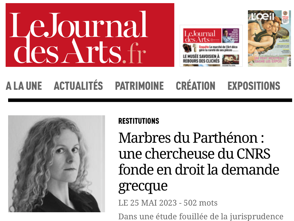 Journal des arts, 25 May 2023, discussion of The Parthenon Marbles and International Law