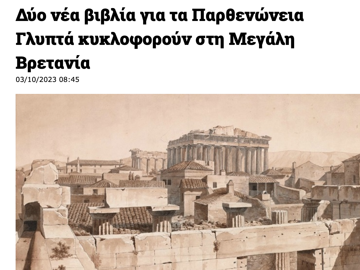 Δύο νέα βιβλία για τα Παρθενώνεια Γλυπτά κυκλοφορούν στη Μεγάλη Βρετανία (in Greek)