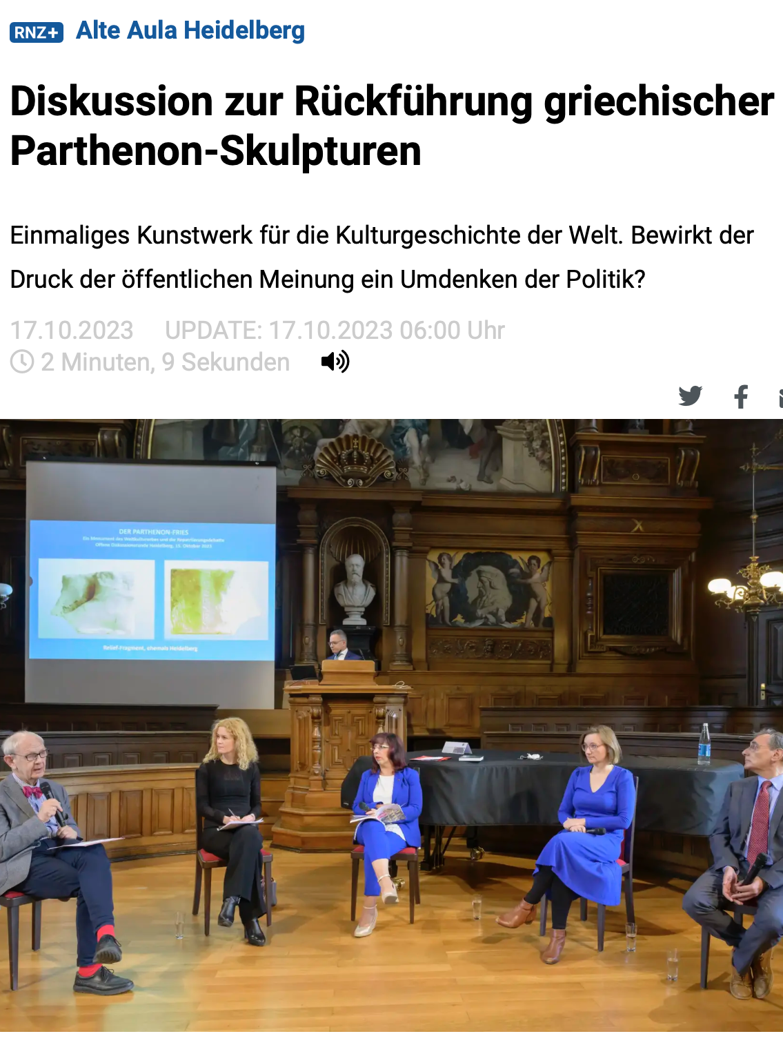 Rhein-Neckar-Zeitung, Discussion of University of Heidelberg event, 17 October 2023