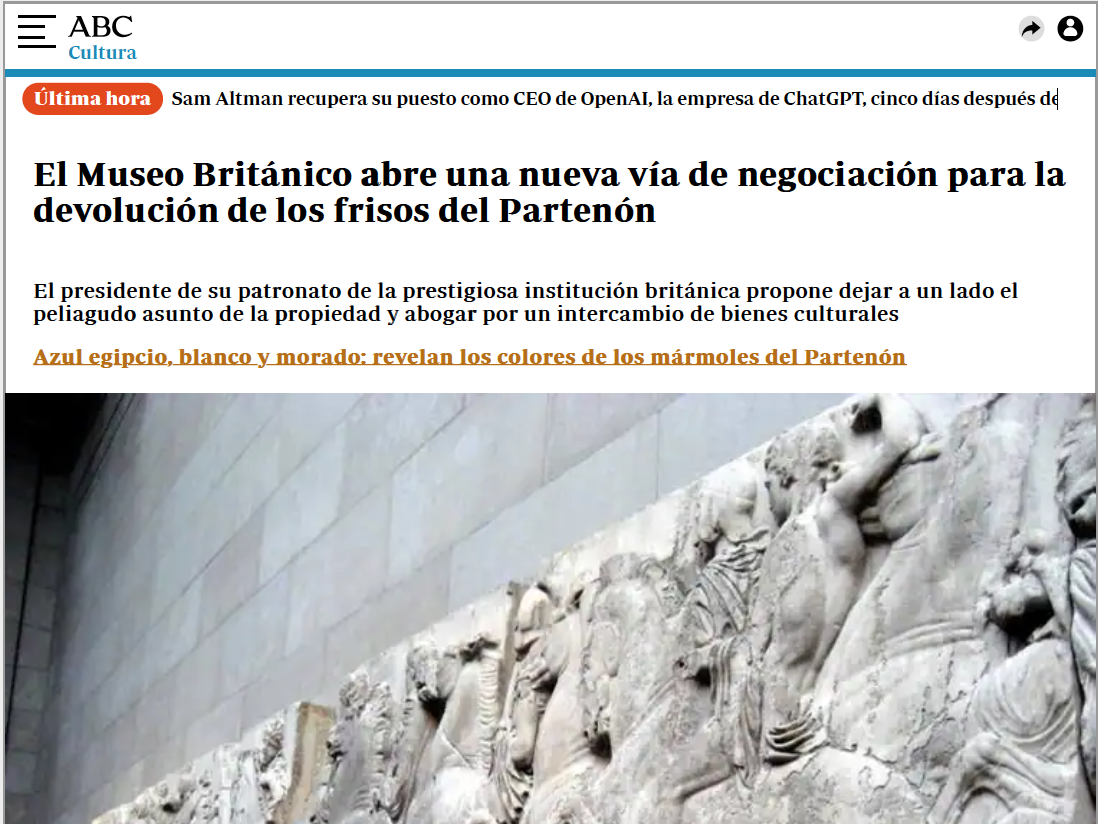 22 Periódico, discussion of The Parthenon Marbles and International Law, 27 December 2023