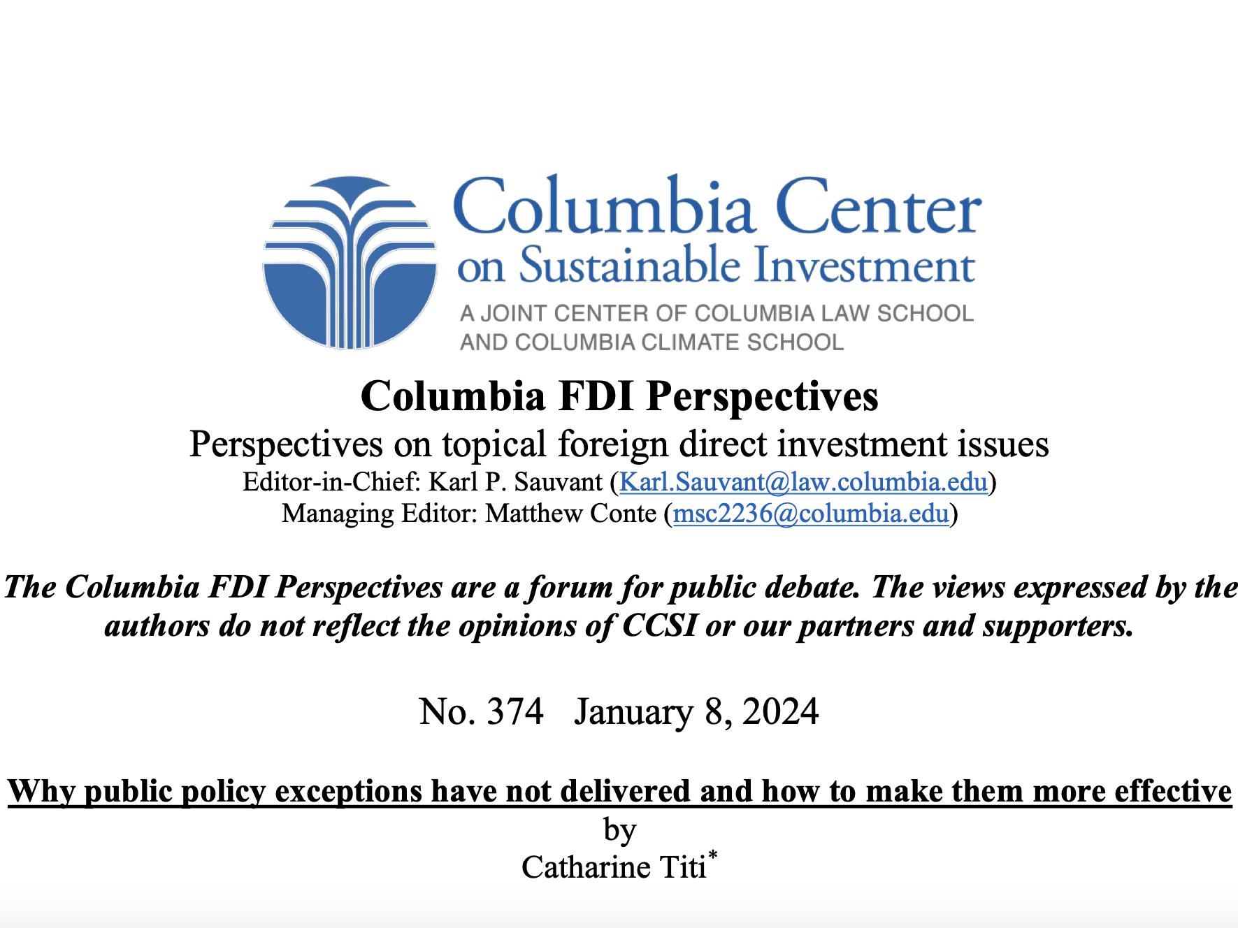 Why public policy exceptions have not delivered and how to make them more effective, by Catharine Titi, FDI Perspectives No. 374, 8 January 2023
