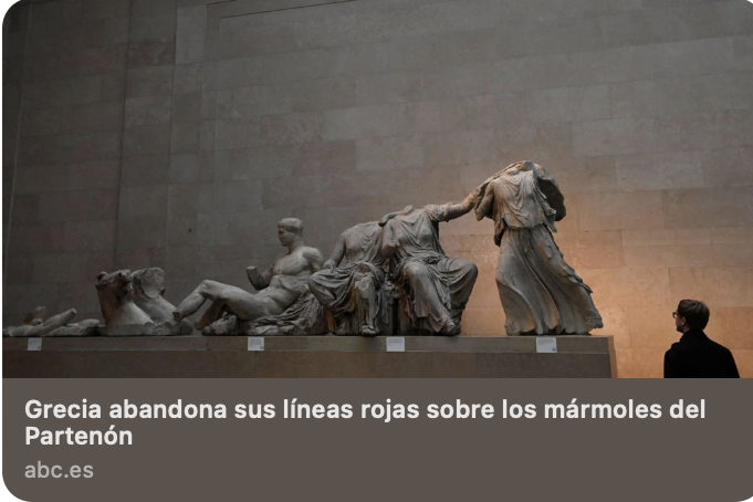 Por qué Reino Unido debe devolver los mármoles del Partenón a Atenas (in Spanish). Access full page here (RFI) or here (France 24)