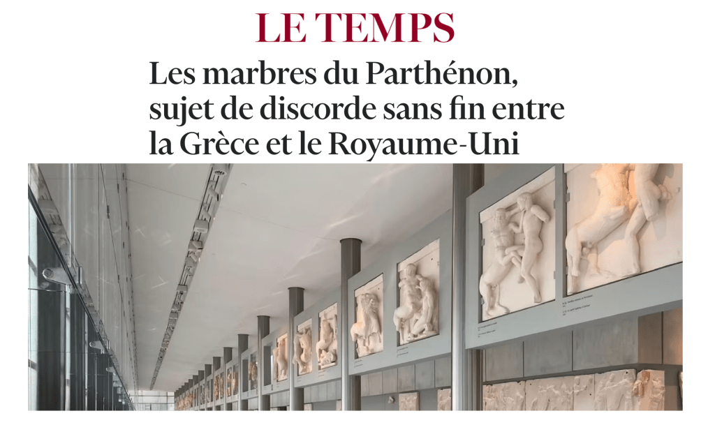 Le Temps, Catharine quoted in discussion about the Parthenon Marbles negotiations, 21 December 2024