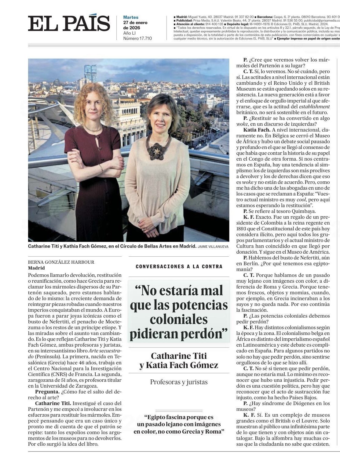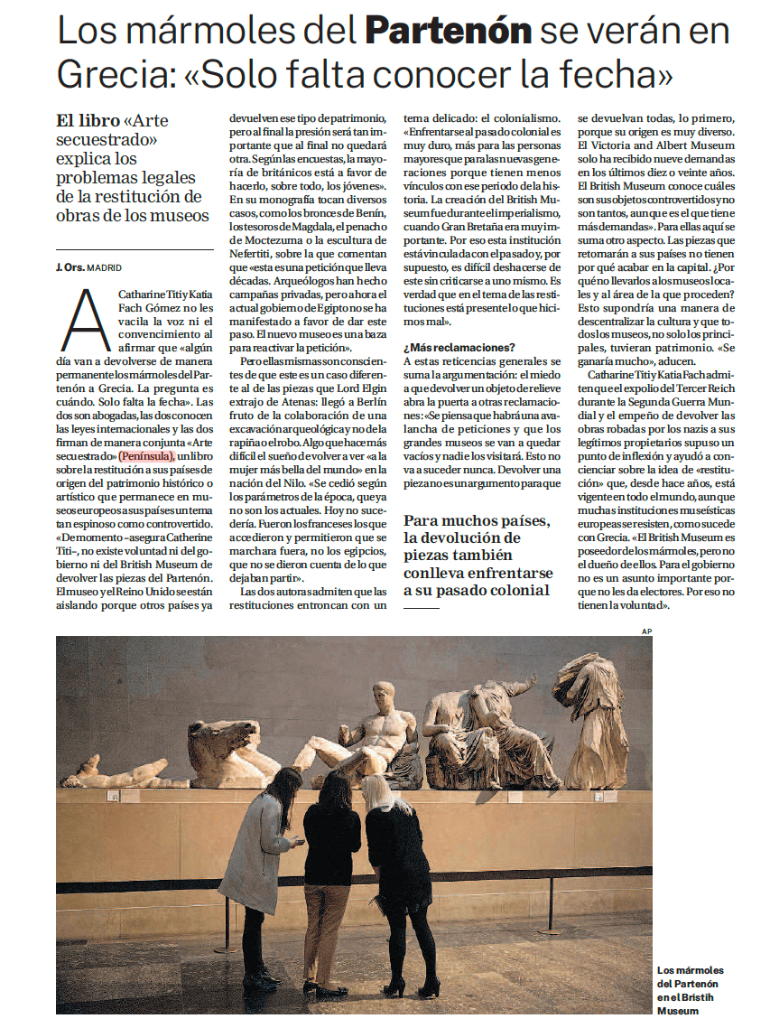 Catharine Titi y Katia Fach, profesoras y juristas: “Veremos volver los mármoles al Partenón” (in Spanish)