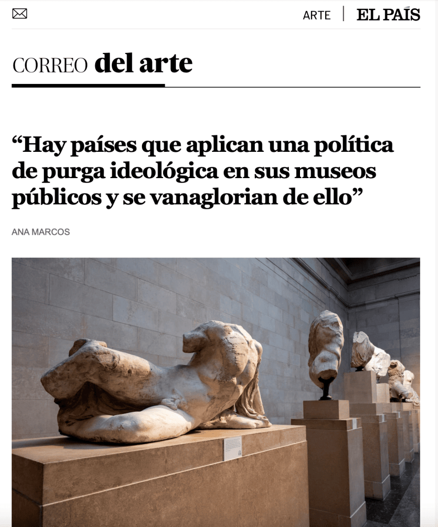 “Hay países que aplican una política de purga ideológica en sus museos públicos y se vanaglorian de ello”(in Spanish)