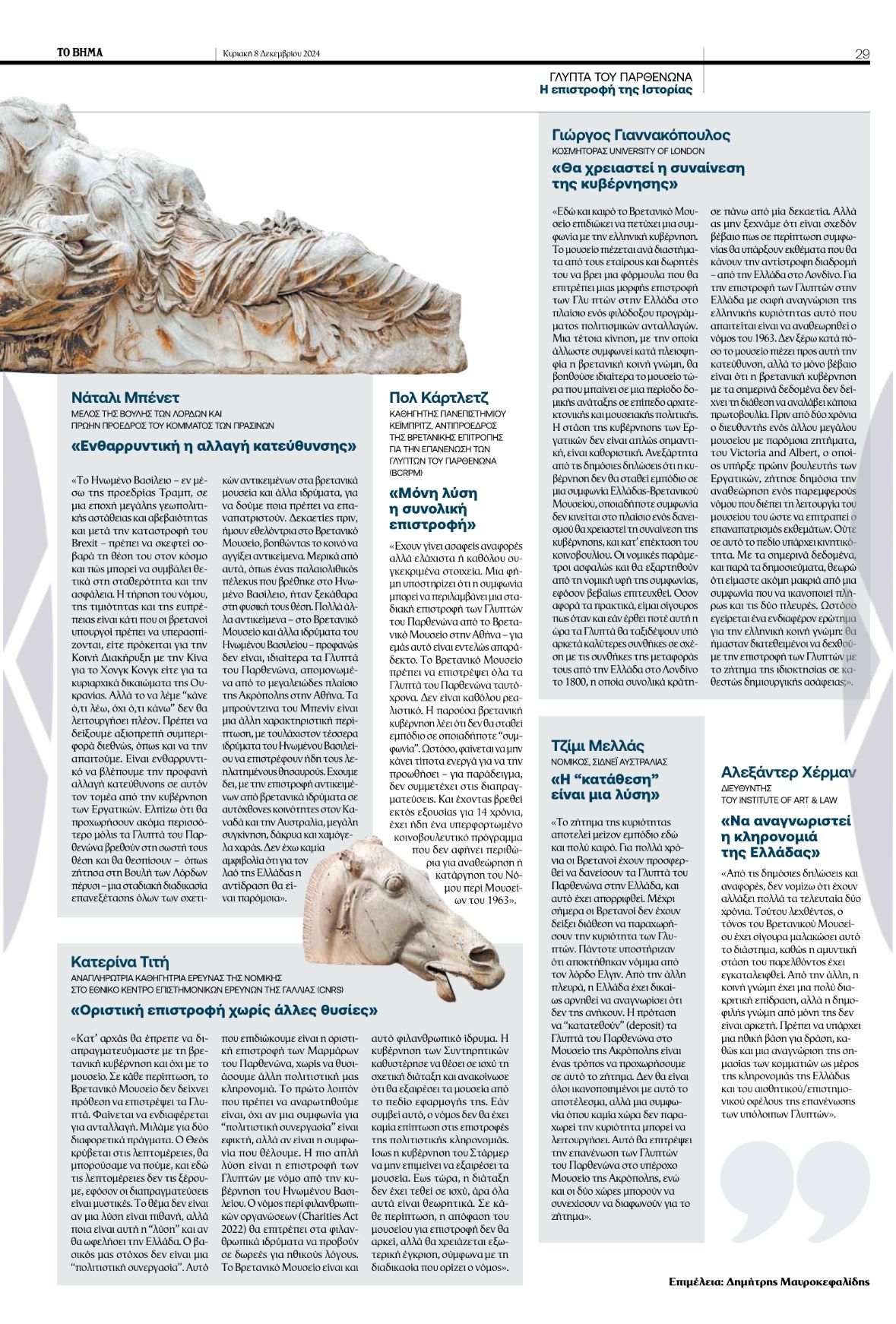 Mία βιαστική συμφωνία για τα Γλυπτά είναι επικίνδυνη (in Greek). On the website of TA NEA, here.
