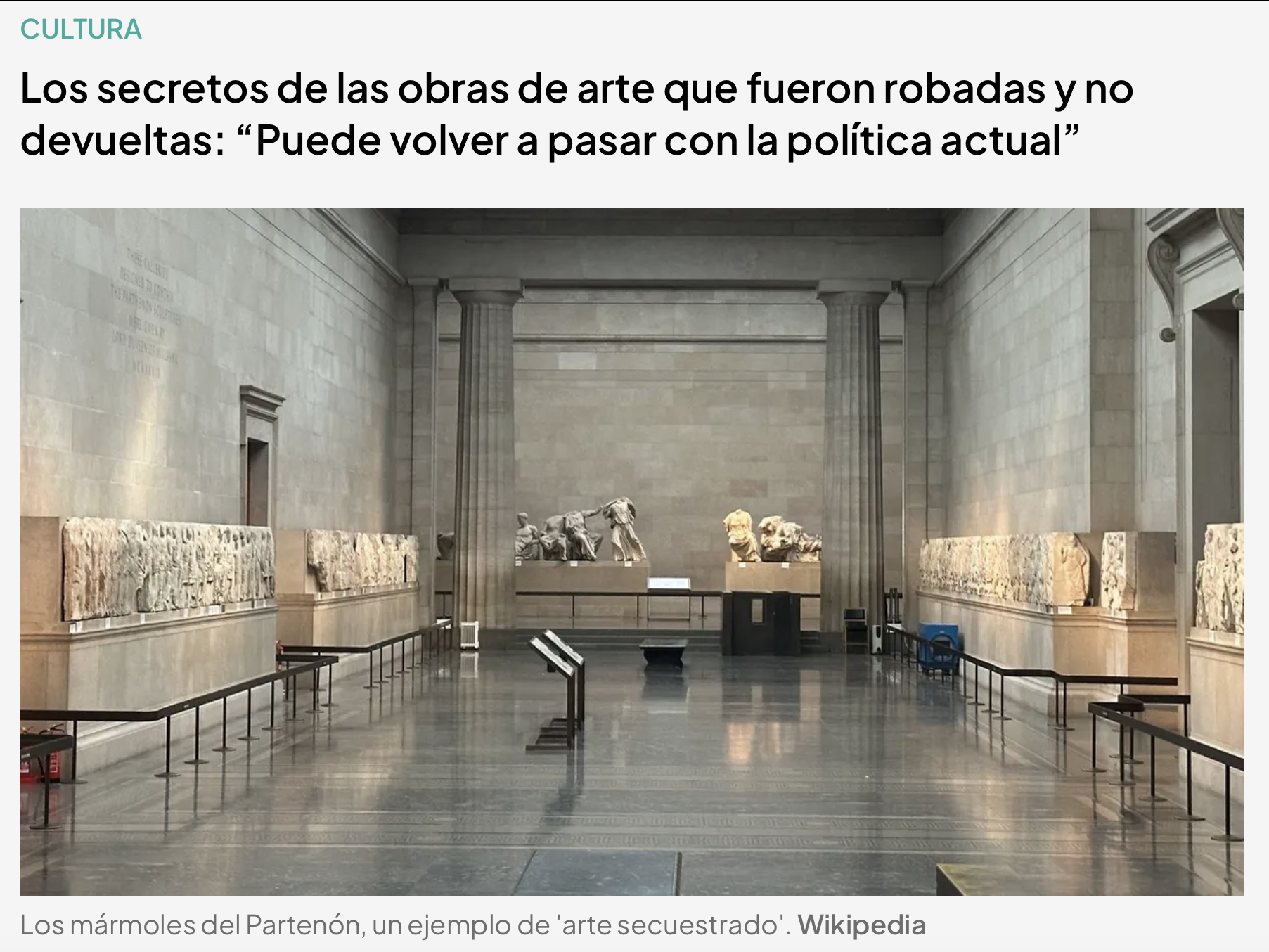 Por qué Reino Unido debe devolver los mármoles del Partenón a Atenas (in Spanish). Access full page here (RFI) or here (France 24)